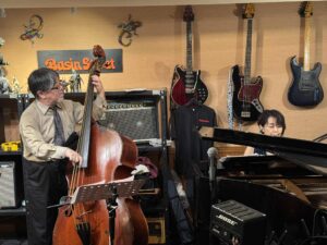 bass小林真人さんは、野太い音で、深いビートで、音圧がずば抜けておられて、そして圧巻はスラップ。感動しながら鳥肌たちながら弾き語っておりました。
