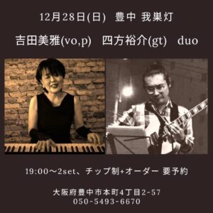 かなり久しぶりに豊中、我巣灯さんにて演奏いたします。